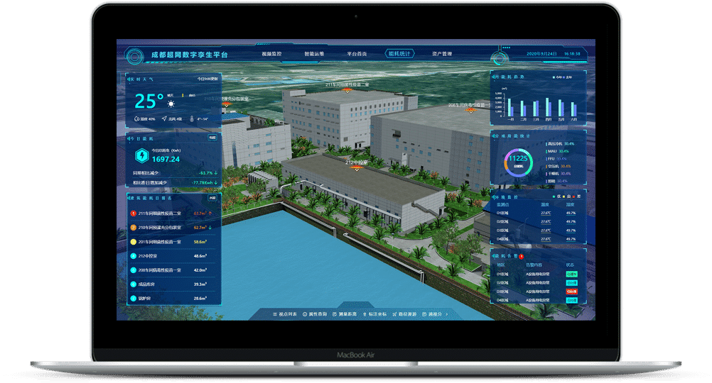物联网和大数据技术的运用,让数字地图灵动起来,兼容并蓄的架构,将园区所有子系统数据汇总展示。